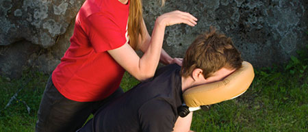 Med tryck stimuleras bestämda punkter längs kroppens meridianer (energikanaler). Detta balanserar kroppens energier och ger både en uppiggande och avslappnande effekt. Man sitter på en specialstol och får massage genom kläderna.